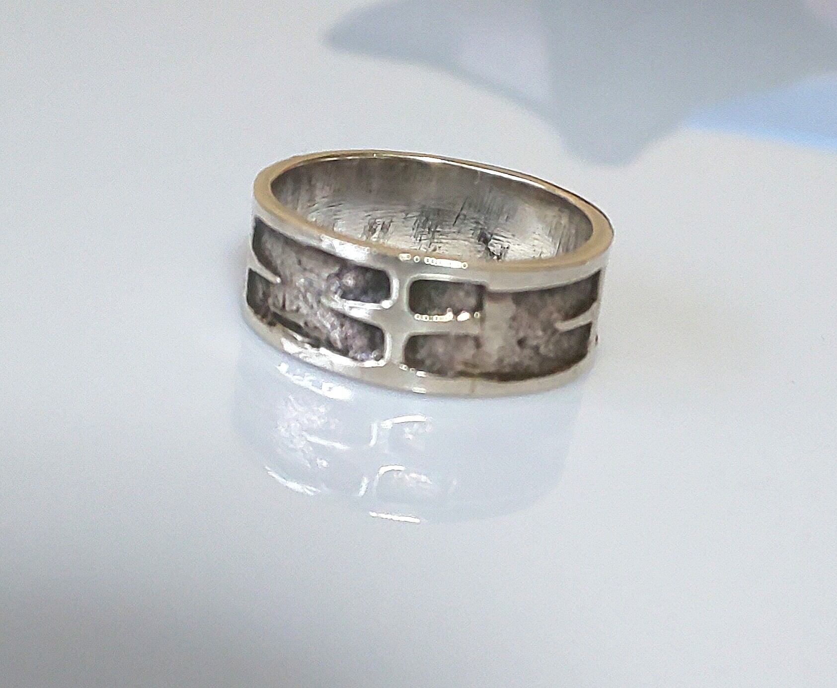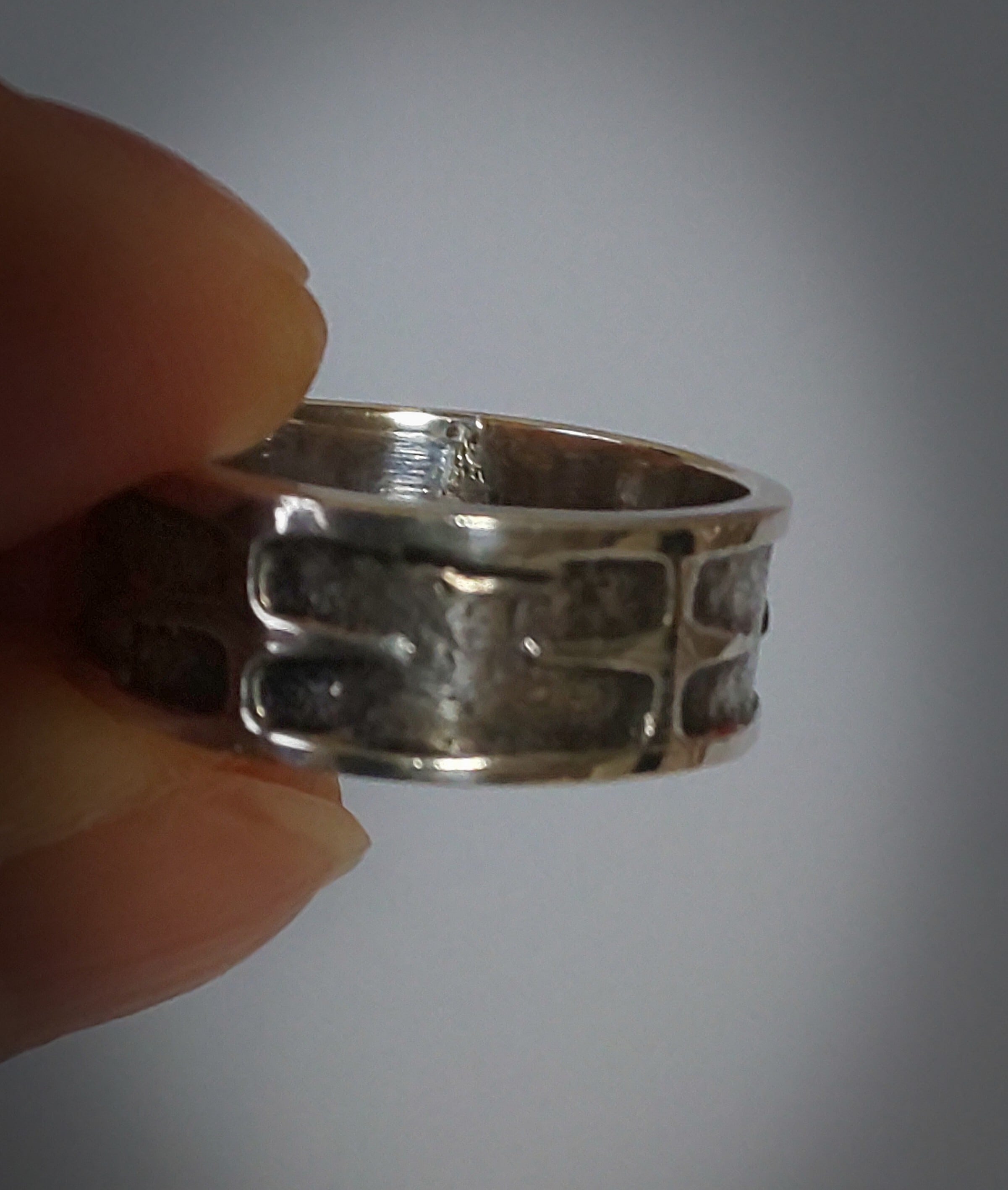 イタリアよりアンティーク調のリングが届きました。燻し加工してあるのでシンプルでお手入れも楽々。軽く拭く位で良いです。メンズでも使えるのですが、サイズが13号位なので合う指にして頂ければどの指にもフィットします。