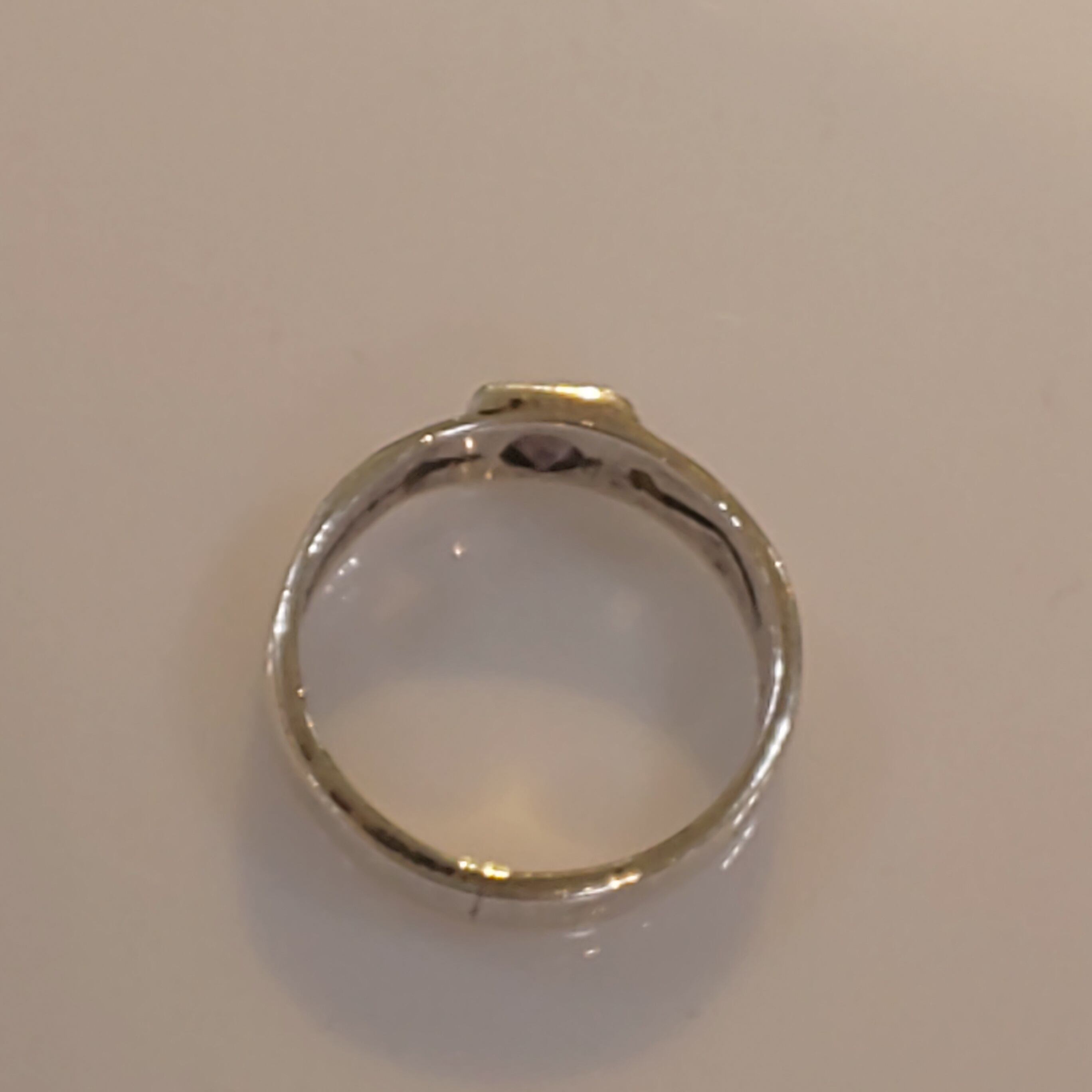 小さな四角のアメジストにサイドのデザインがオリジナリティー溢れてます。