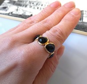 フィレンツェのデザイナー兼作家マリオさんの手作り。いびつな形で程よくカッティングされたオニキスを6個配置してます。回っても同じデザインなので中心を気にしなくて良いリングです。