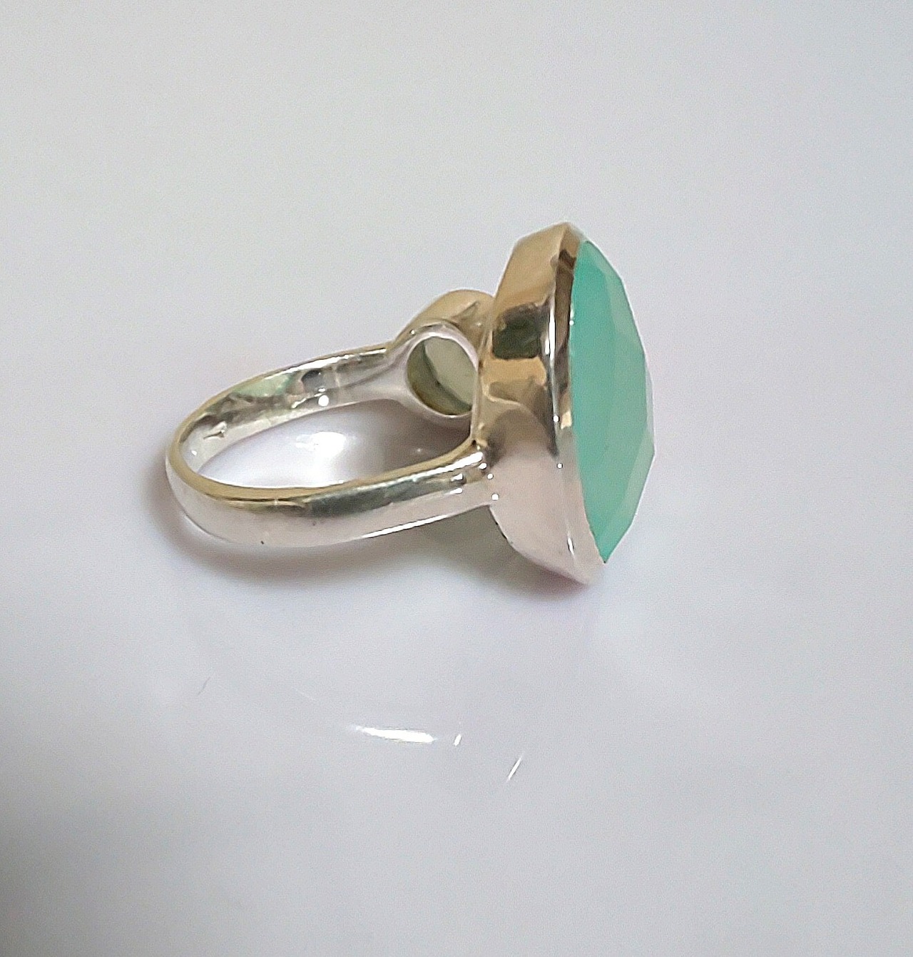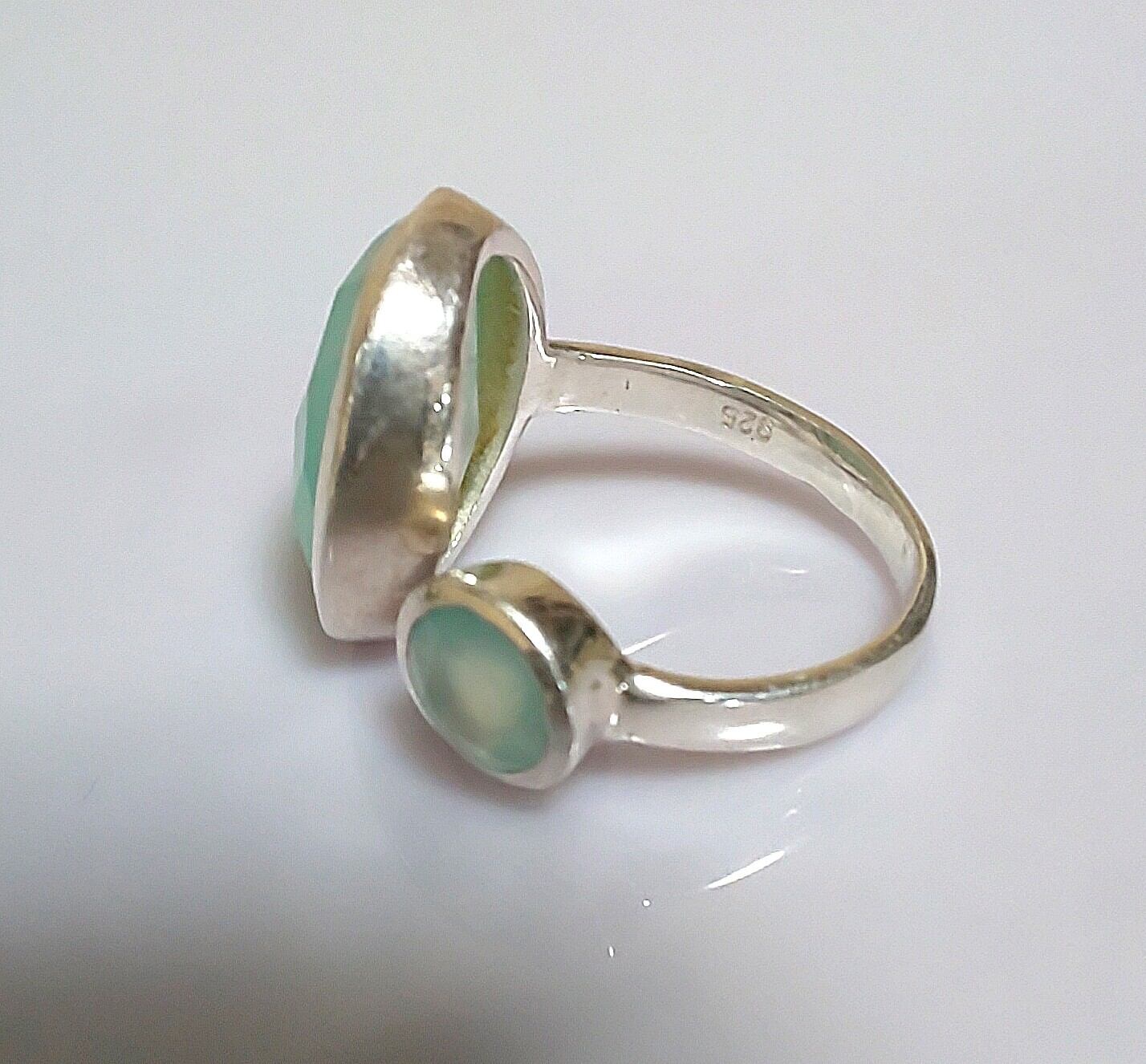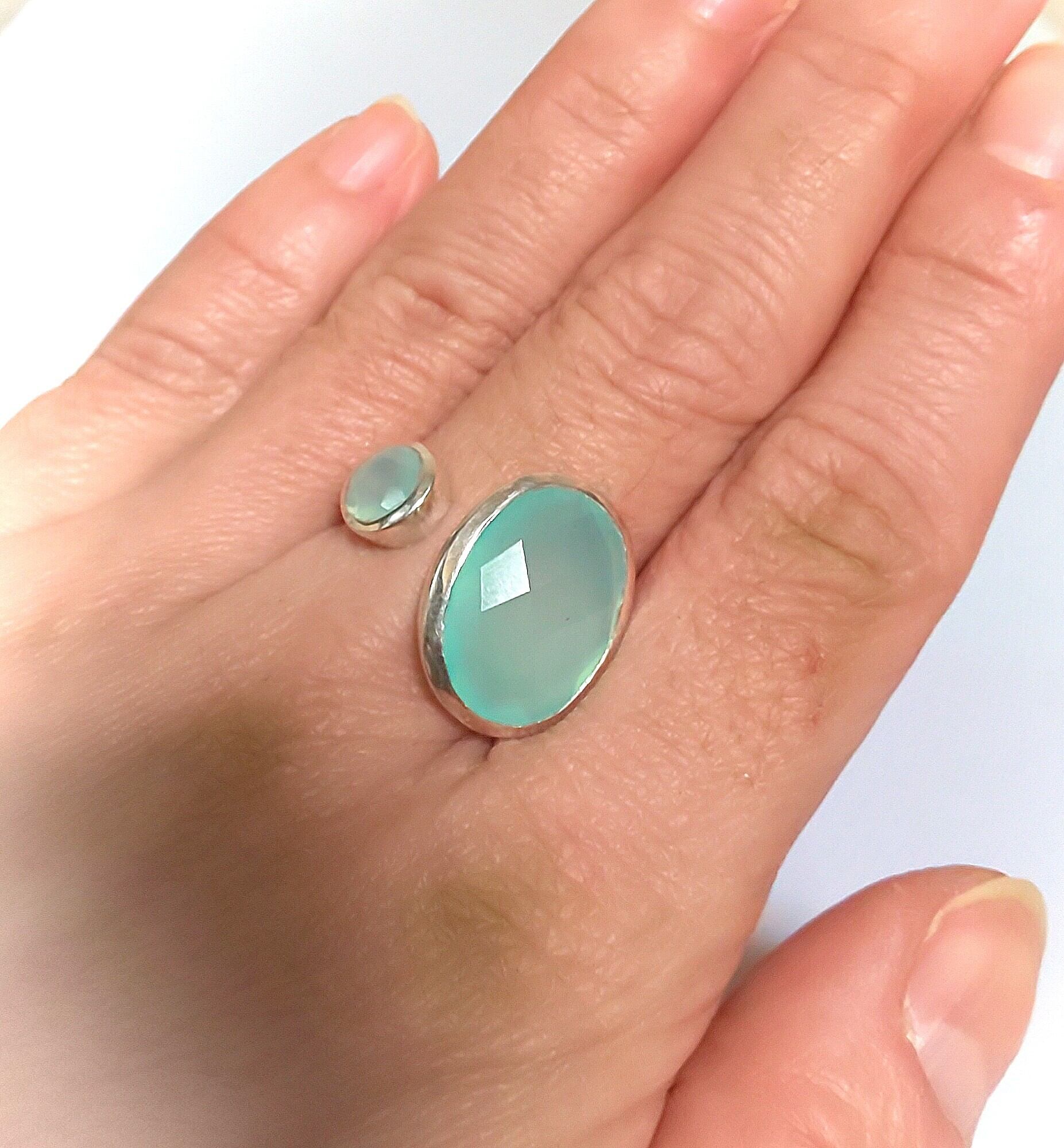 大きいカルセドニーの綺麗な色とカッティングは保証します!つけた感じも楽しいですね。中指が一番合う気がします(^^)