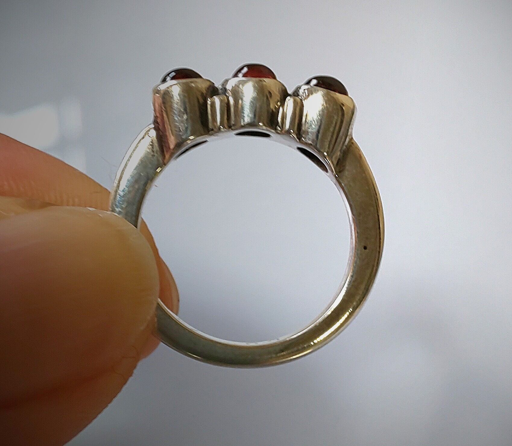 フィレンツェの人気点マリオさんの手作り。ガーネットの台の作り方、リングの部分の平べったい感じが独特(^-^)