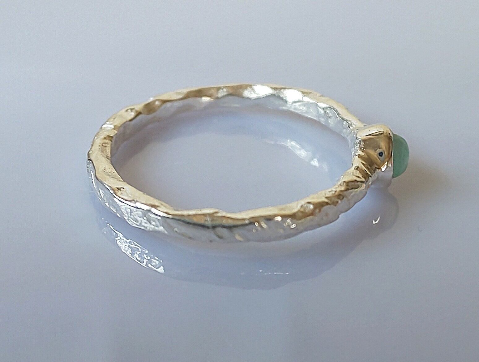 フィレンツェのマリオさんの定番人気商品です。シンプルなデザインに小さな天然石を入れました。リングもゴツゴツとした手打ちを入れて適当な太さが程よい感じ(^^)v