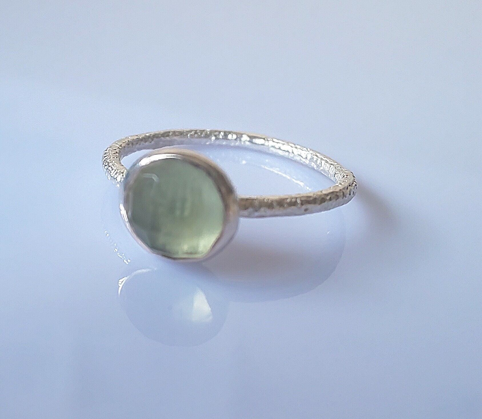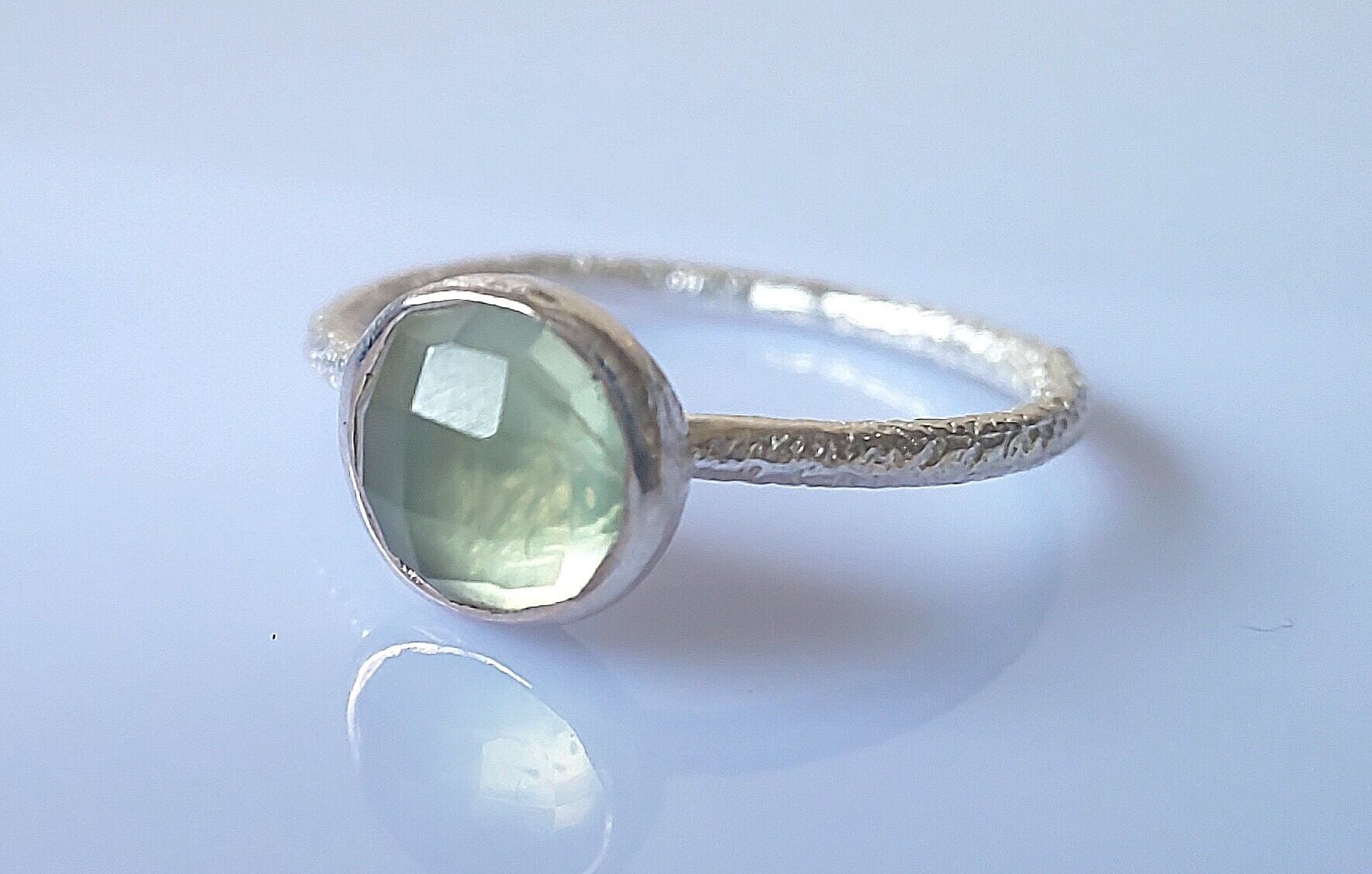 フィレンツェのマリオの手作り。小さめのカルセドニー7㎜にカッティングが程こされてます。薄目の黄緑が肌に馴染む色ですね。