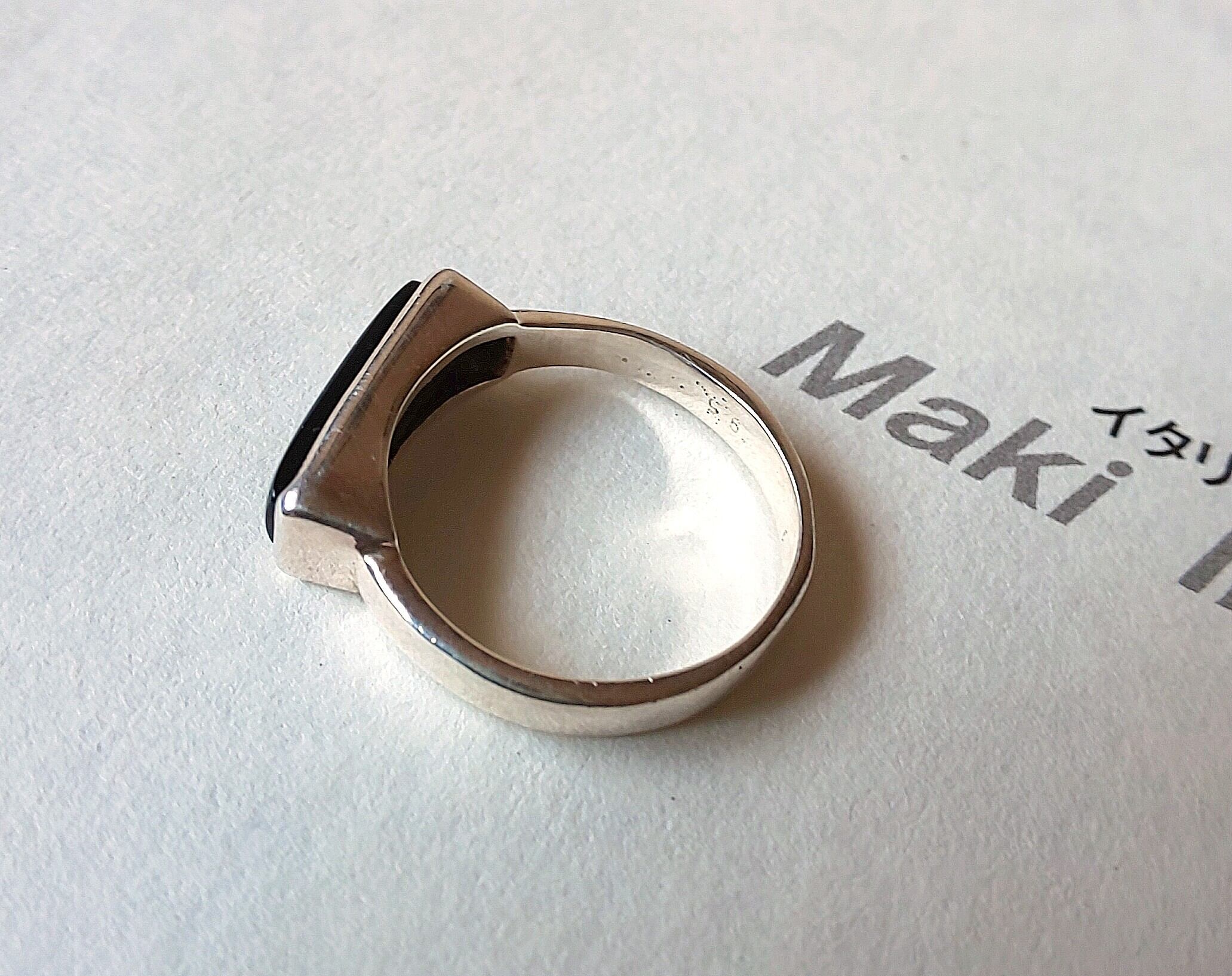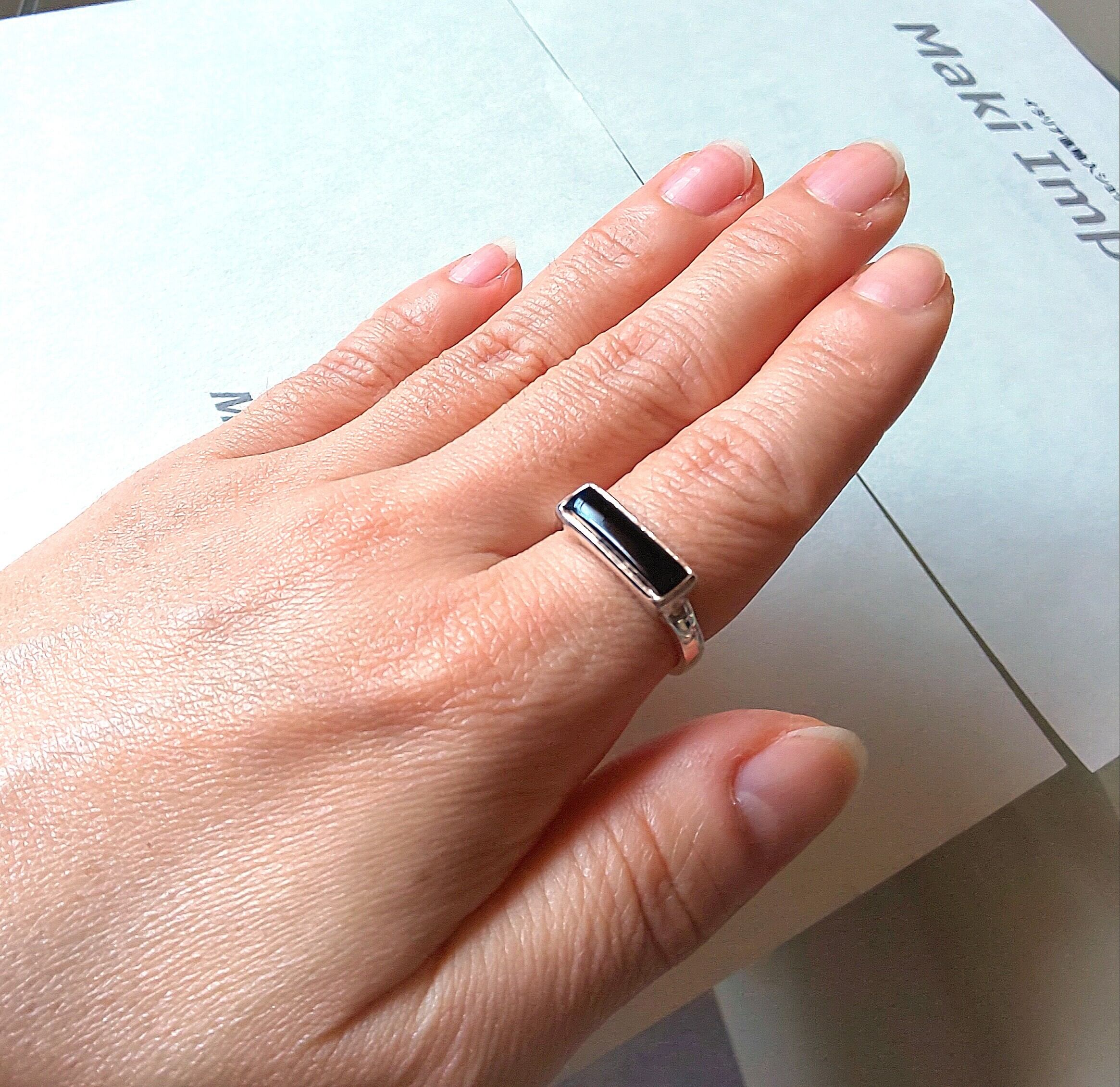 シルバーにお洒落な形のオニキスが入ってます。すごくシンプルだけど、洗練された感じがしますね(^^)