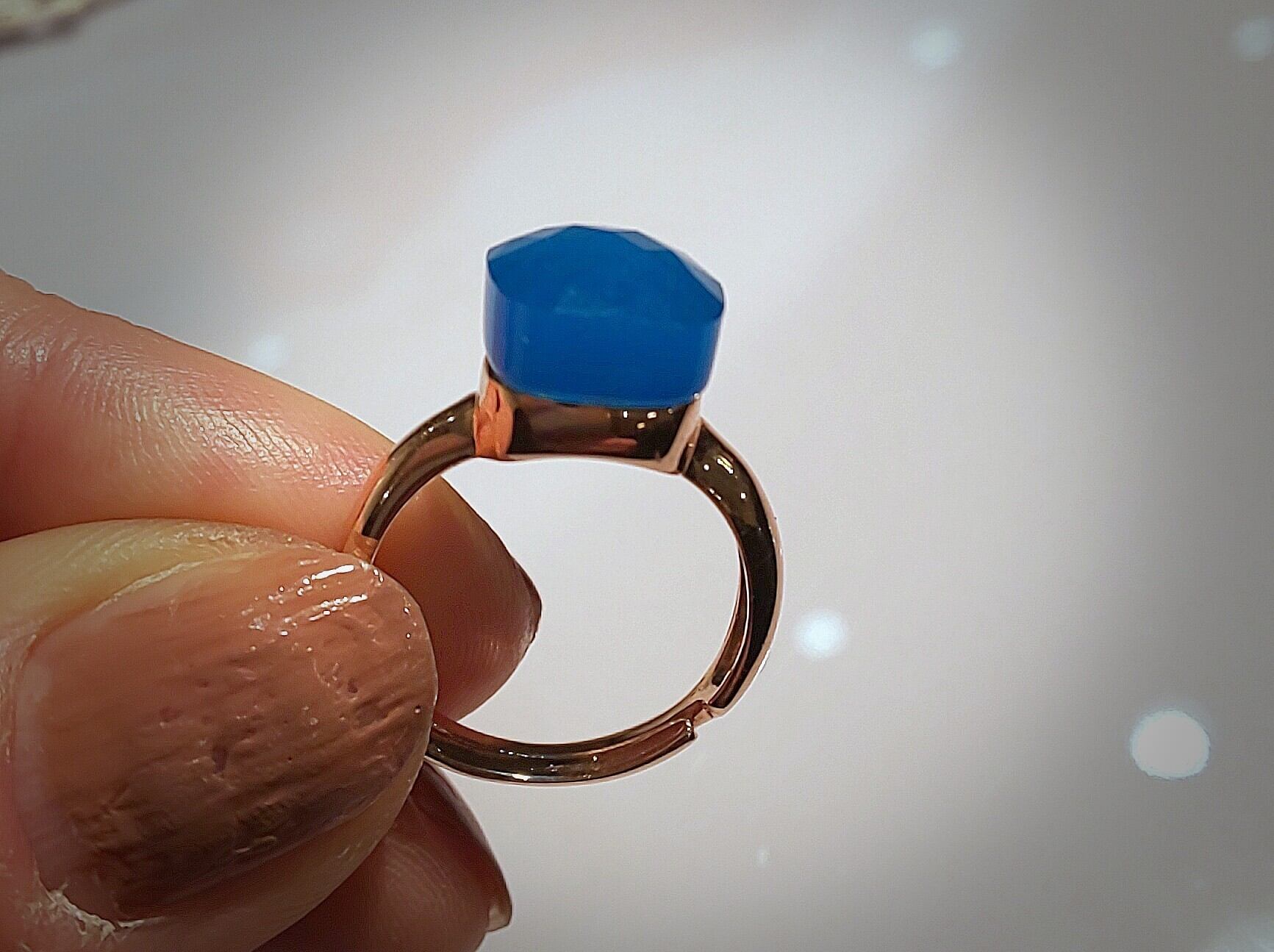 イタリア製、白メノウ、ブルーカルセドニー、シルバーにピンクゴールドコーティング、フリーサイズ