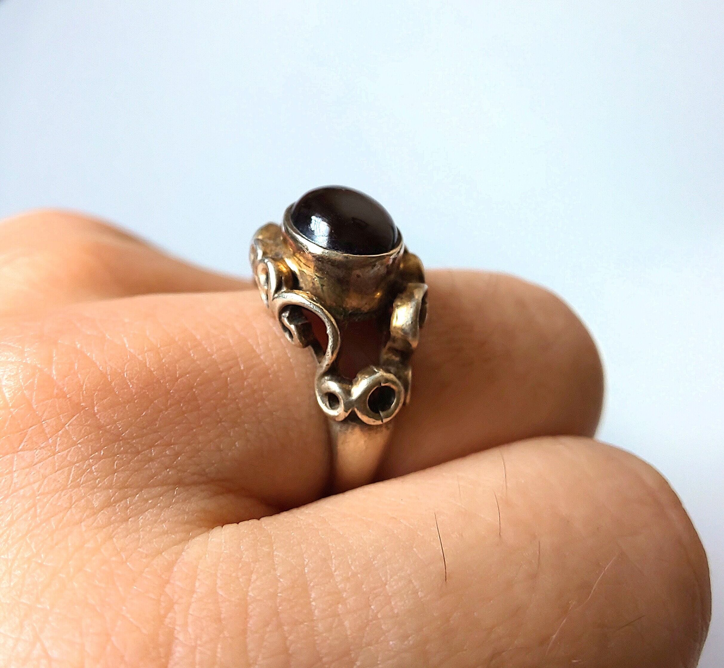 イタリア製、シルバーに金メッキ、ガーネット13号