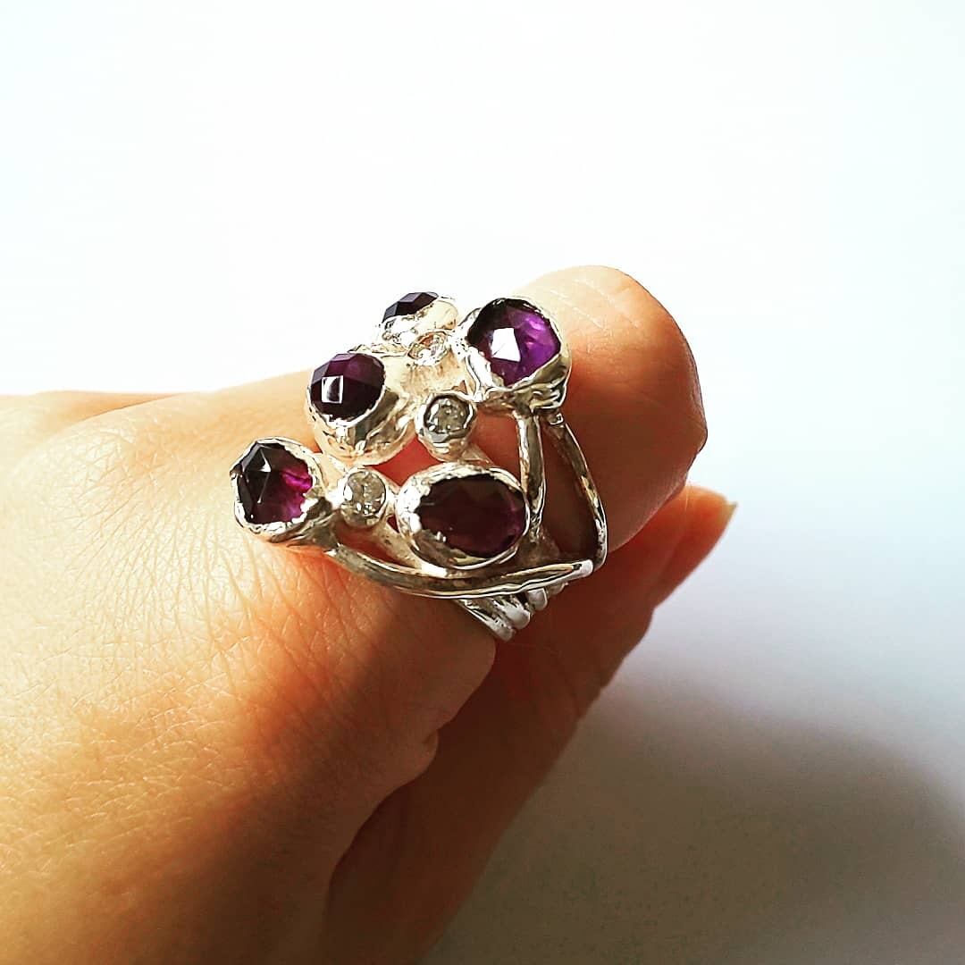 イタリア製、アメジスト、ジルコニア、シルバー、19号