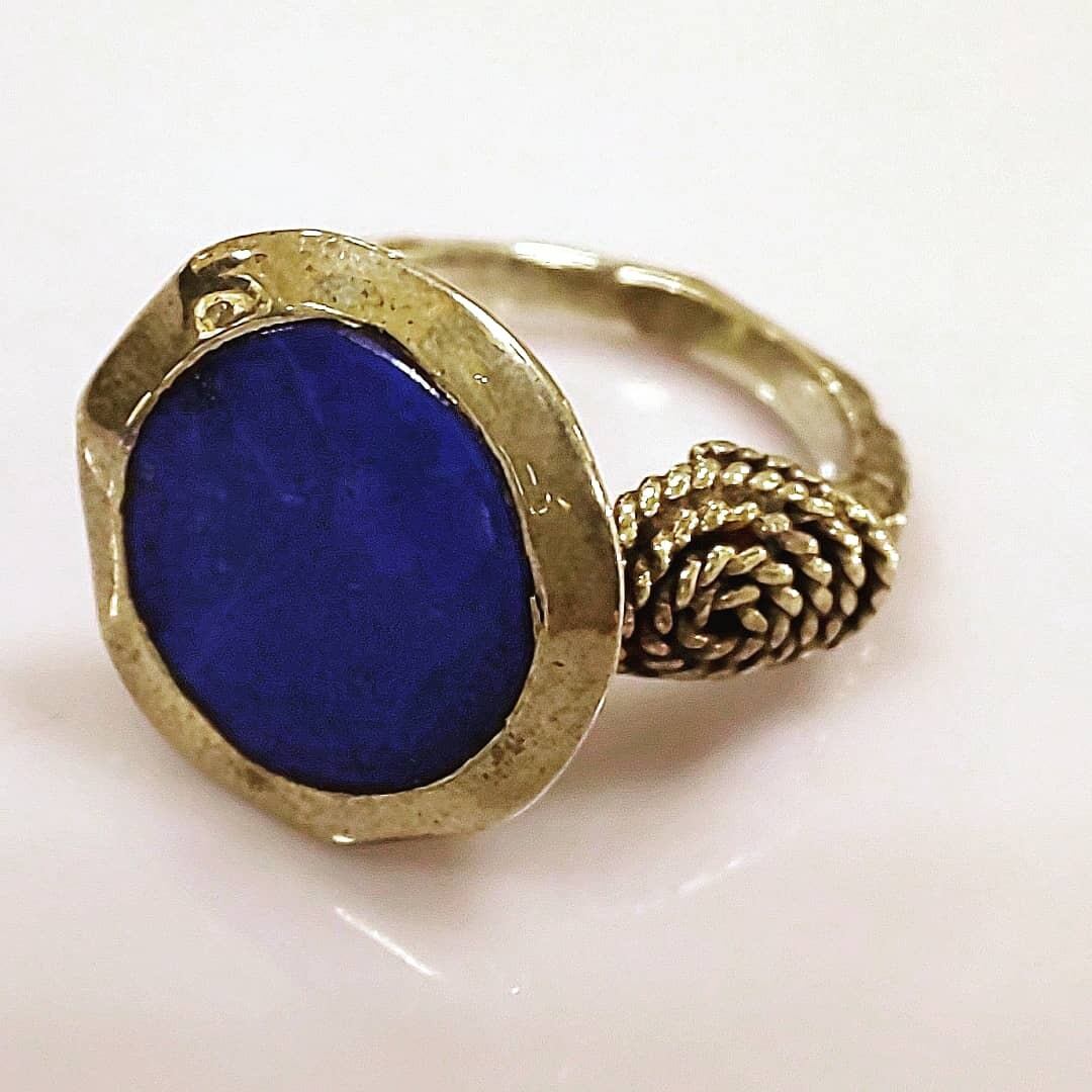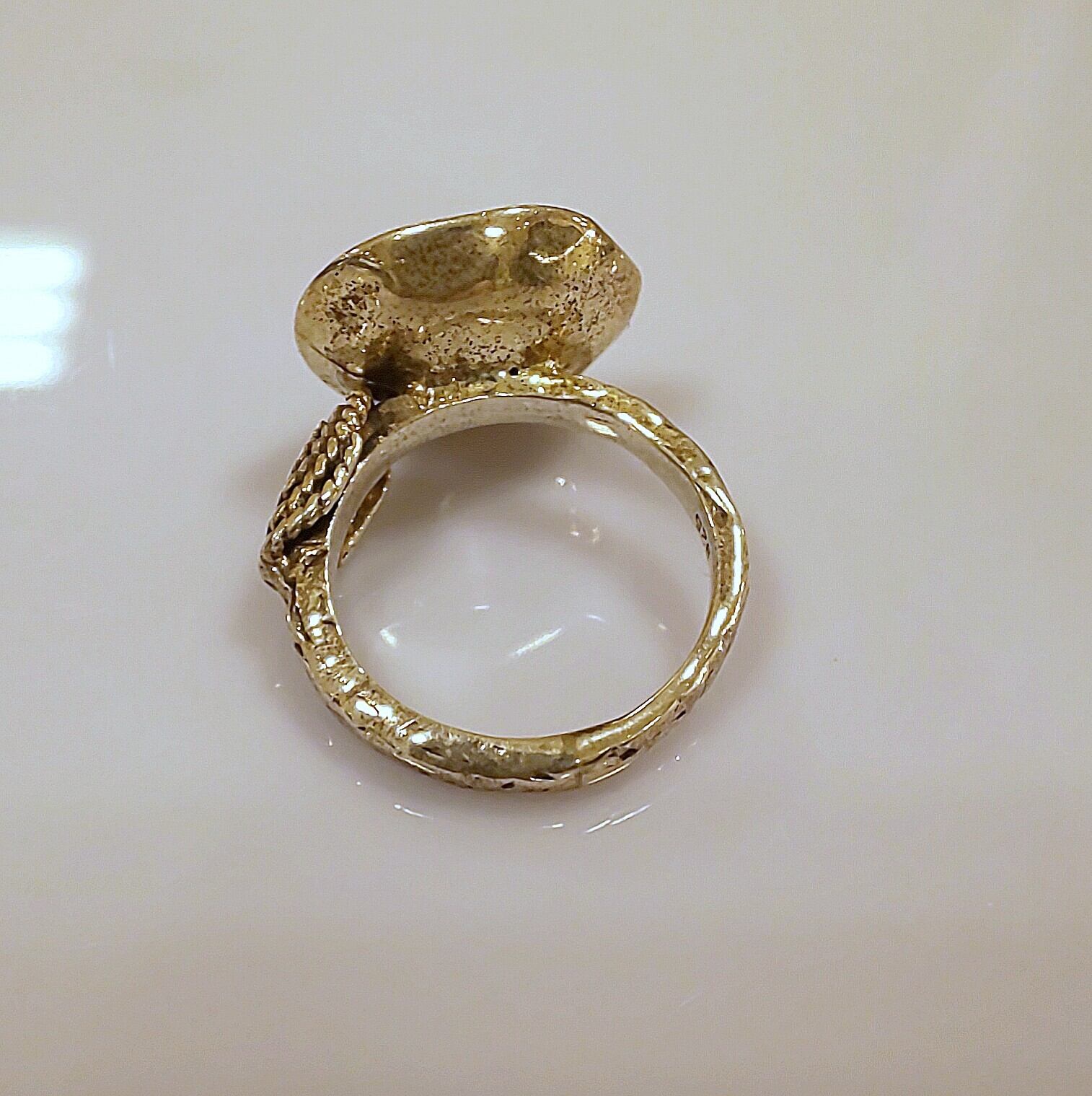 石は丸だけど枠が六角形っぽくなってて、台の裏側も手打ちのボコボゴリングもそんな感じで横に渦巻きのデザインが入ってます!