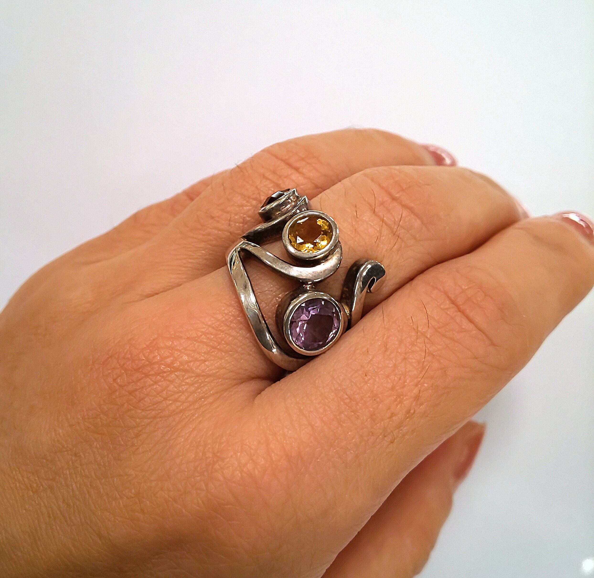 イタリア製、シルバー、アメジスト、ガーネット、シトリン、13号