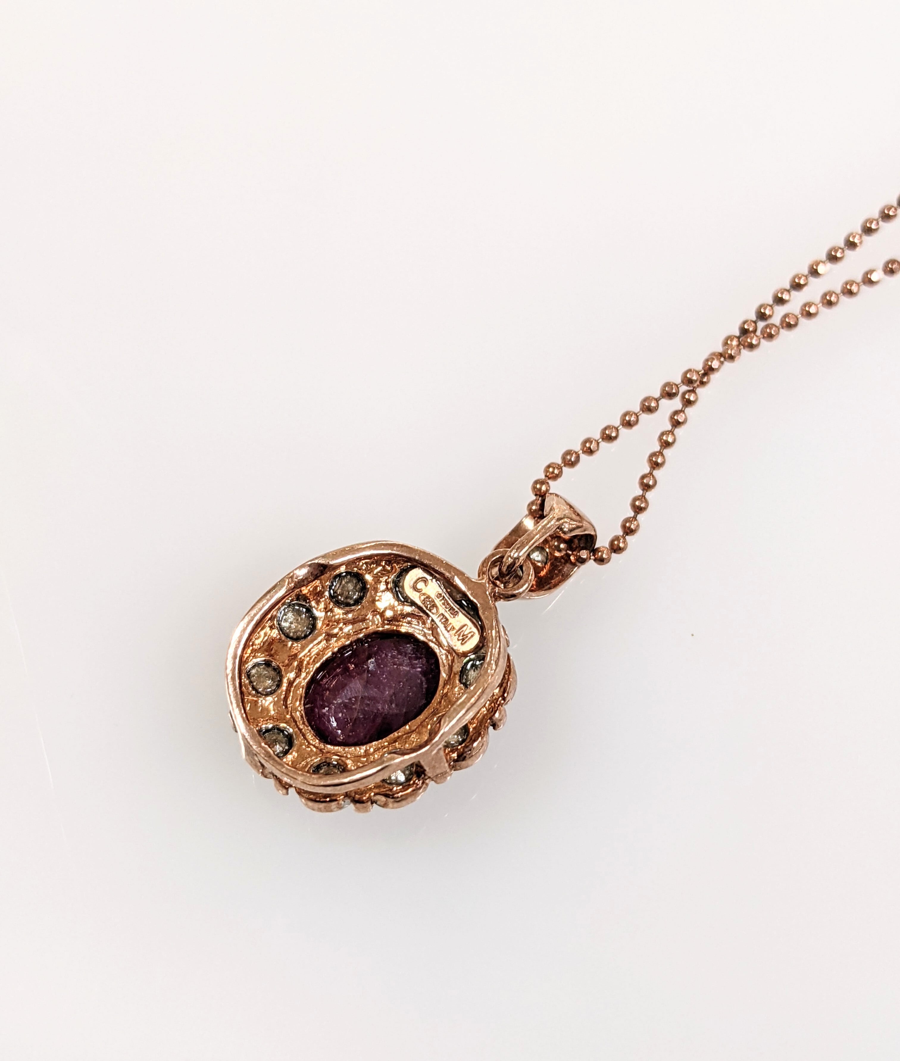 アンティーク調のネックレス、深いルビーの原石が雰囲気良くて周りにジルコニアを配置しました。