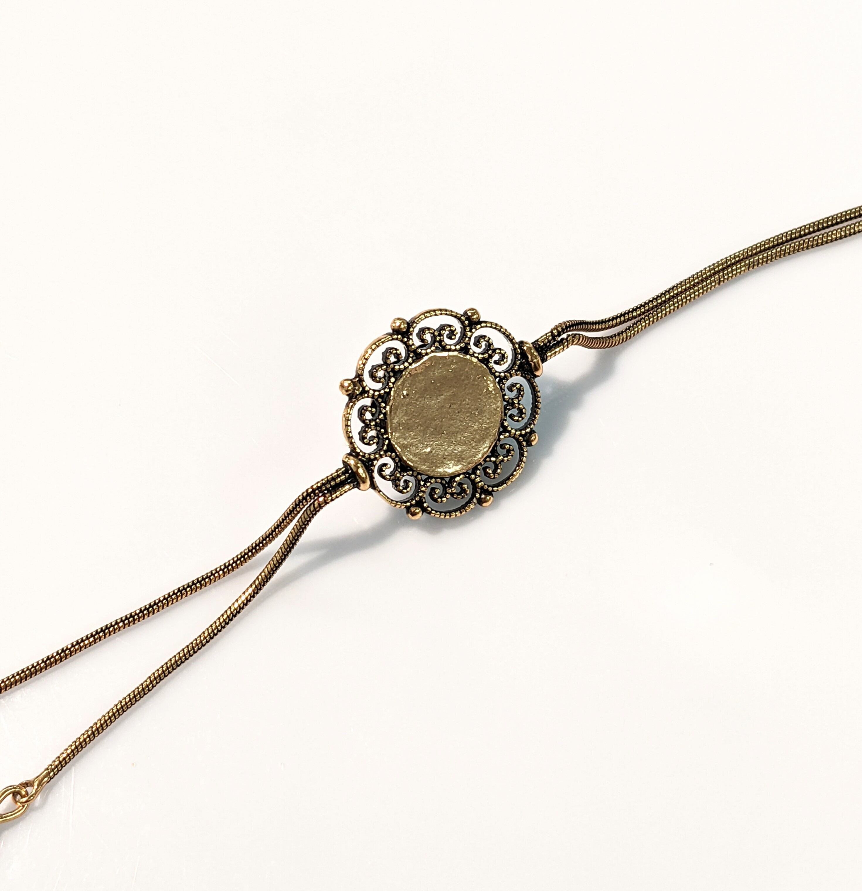 このネックレスは短くチョーカーっぽいです。ただ下のラインが5cmあるので胸が空いた洋服や、長めに着けてハイネックの上から着ければ素敵!