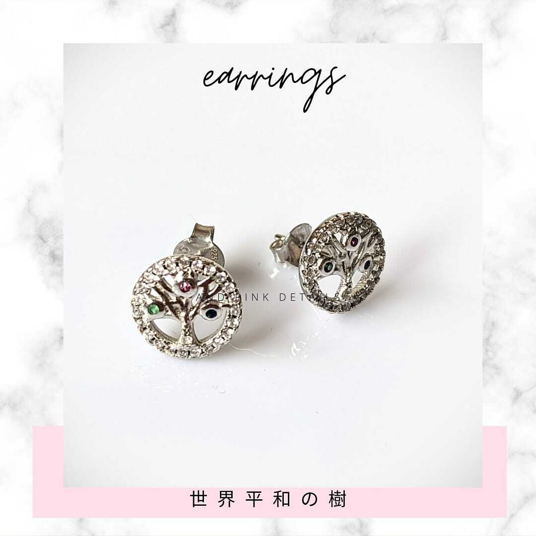 世界平和の樹を、モチーフにした人気のデザイン。周りも全てジルコニアを埋め込み平和の樹には3色のジルコニアを配置しました。