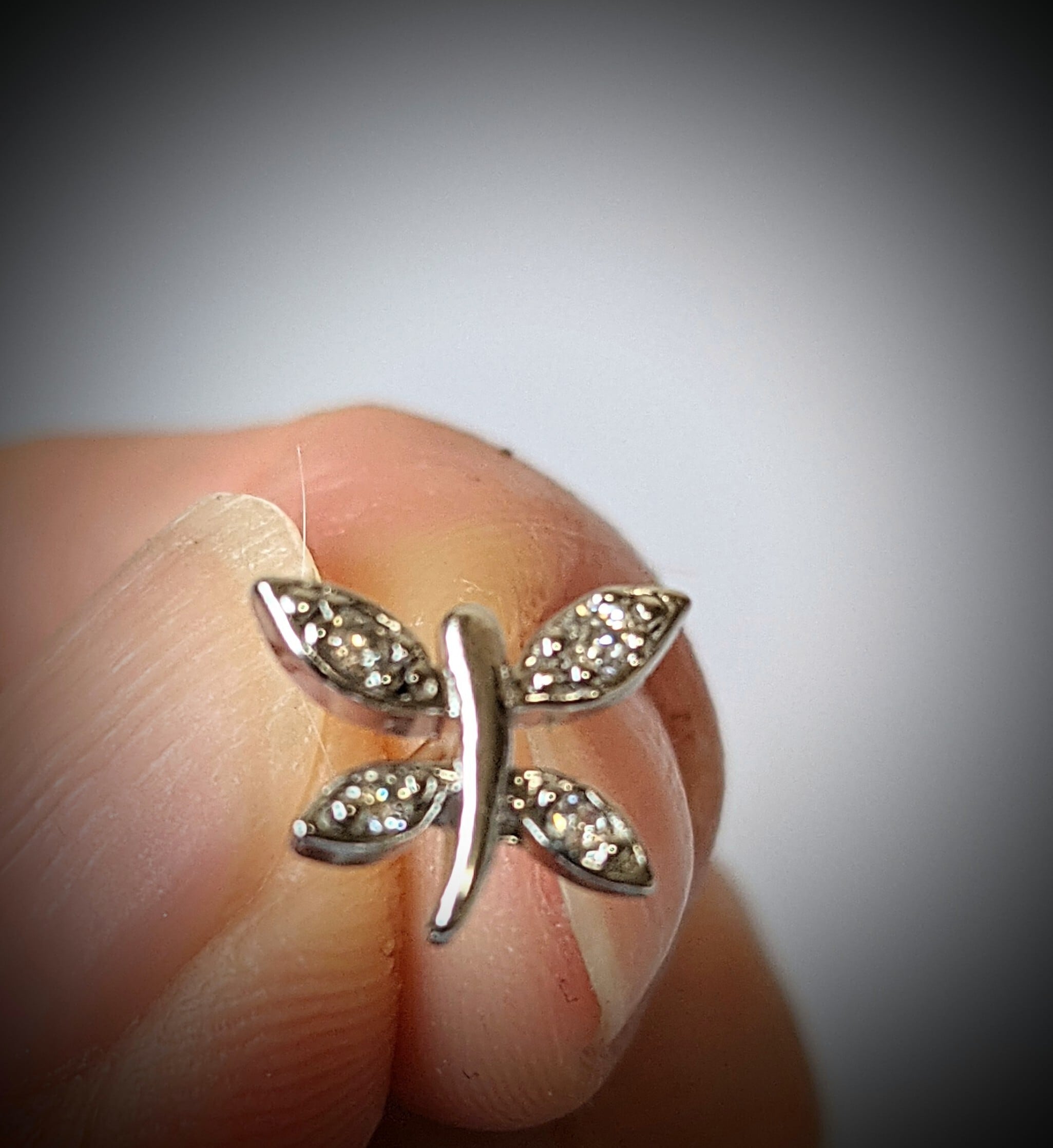シルバーにジルコニアを羽にあしらったシンプルなデザイン。小さいので仕事にも付けて行けるのでは。