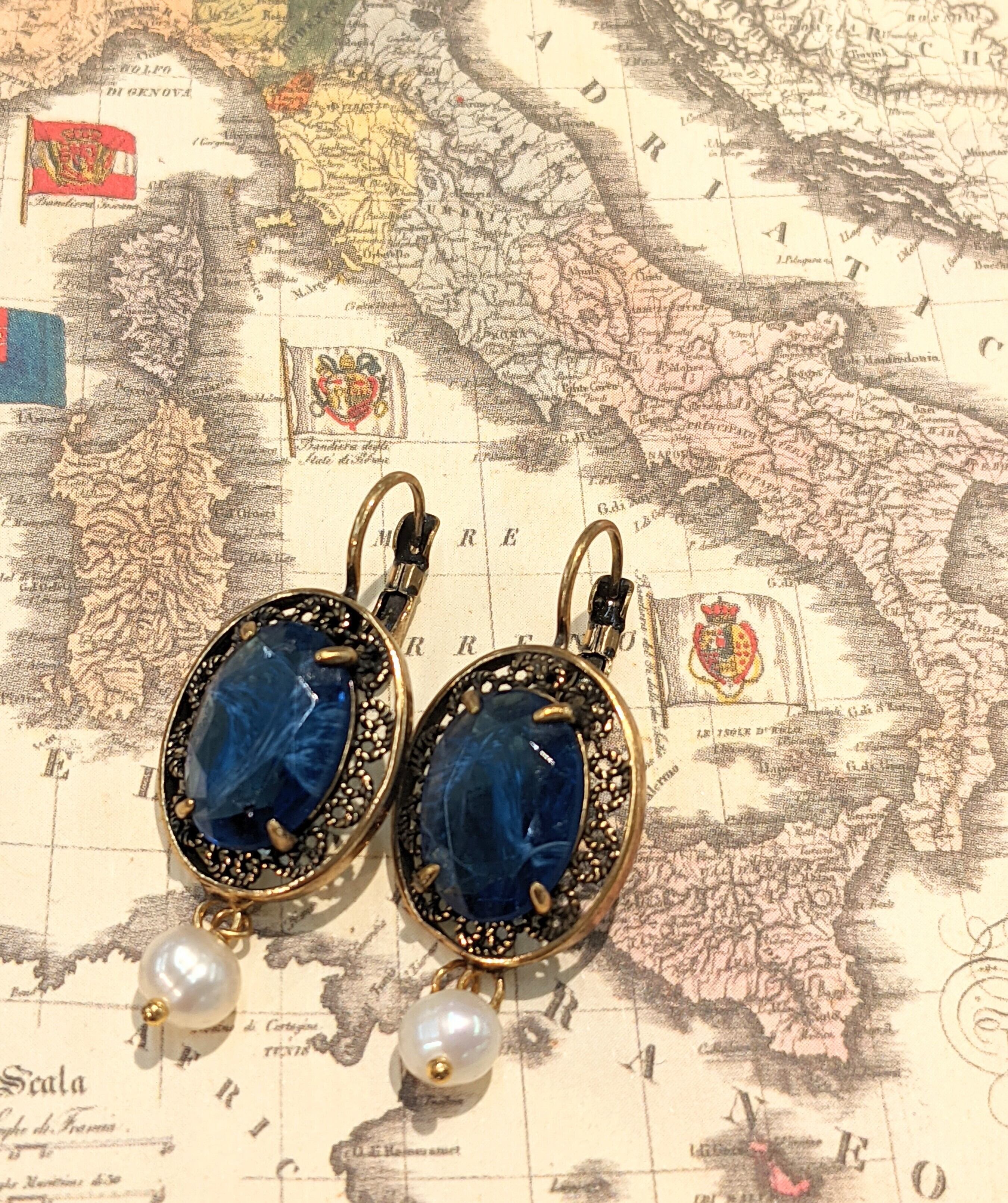 イタリア製、クリスタル、真鍮に金コーティング、淡水パール