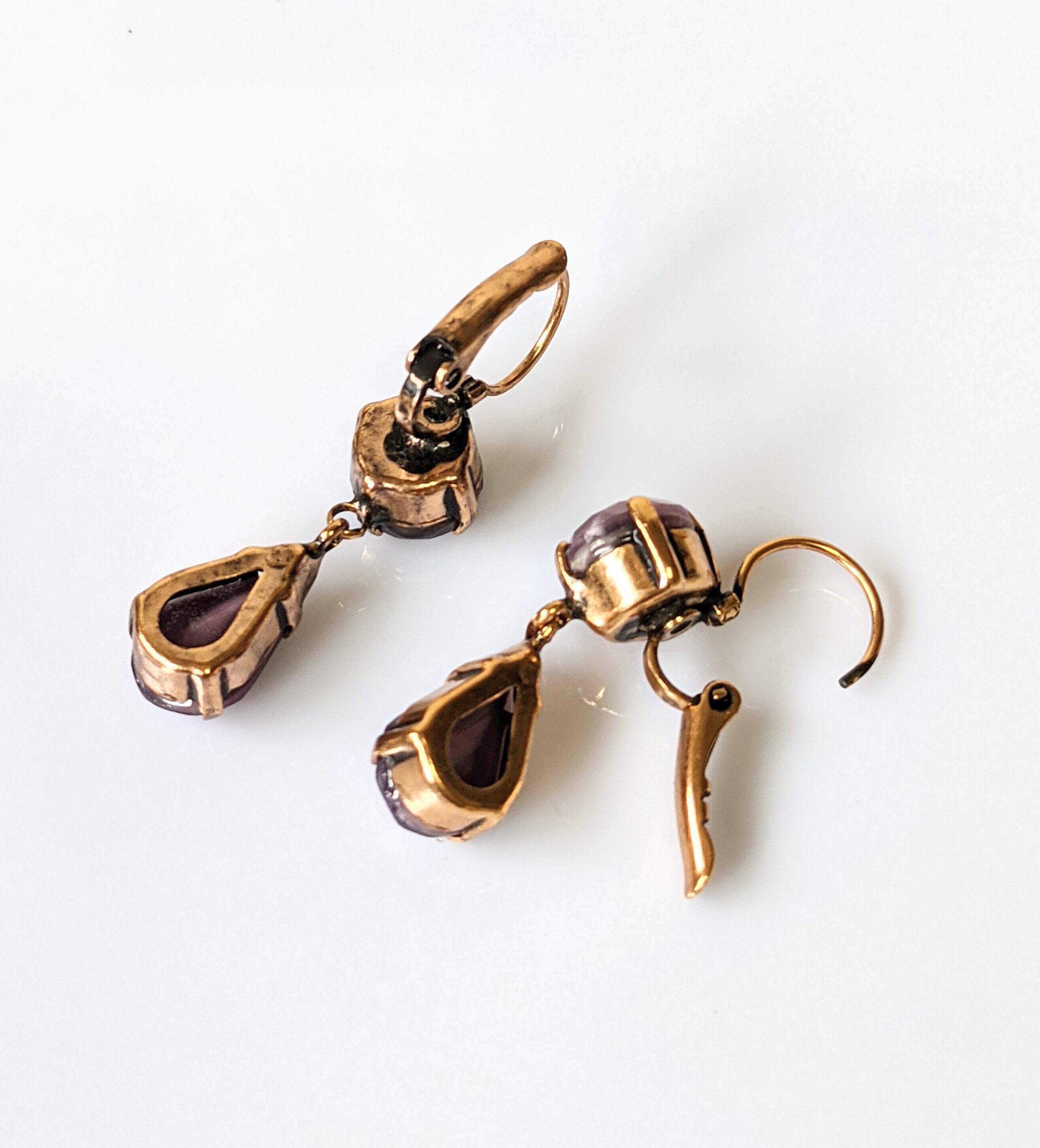 丸と雫のコンビの形が珍しくてそれぞれ4点留めされてます。横から見てもとても綺麗に作っているのがわかるしアンティーク感も出ています!
