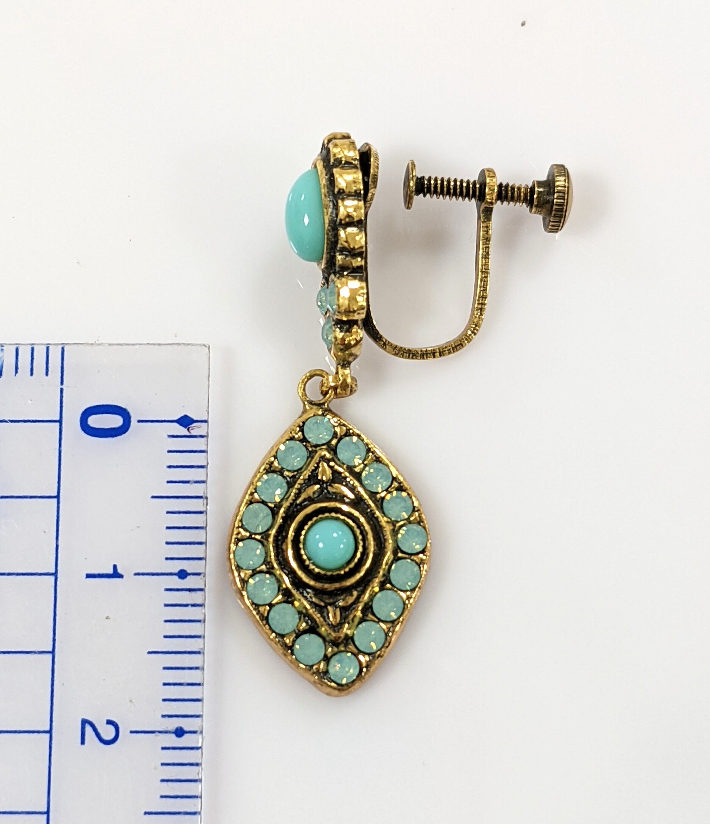 トルコ石カラーのクリスタルと周りはキラキラスワロフスキー