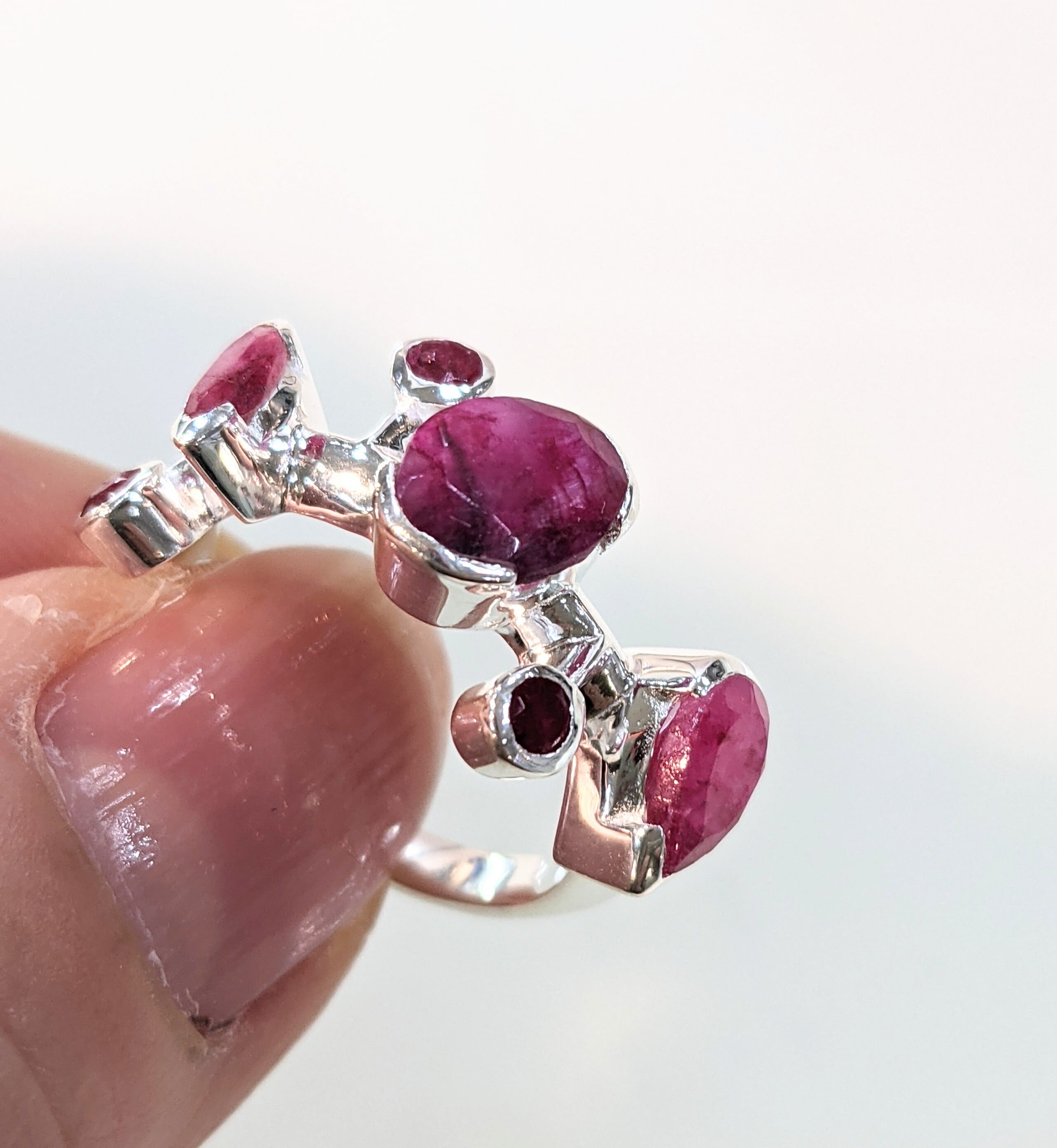 カッティングの綺麗なルビーが6石、全て形が違ってて1番大きい石で0.7cmの大きさがあります✨