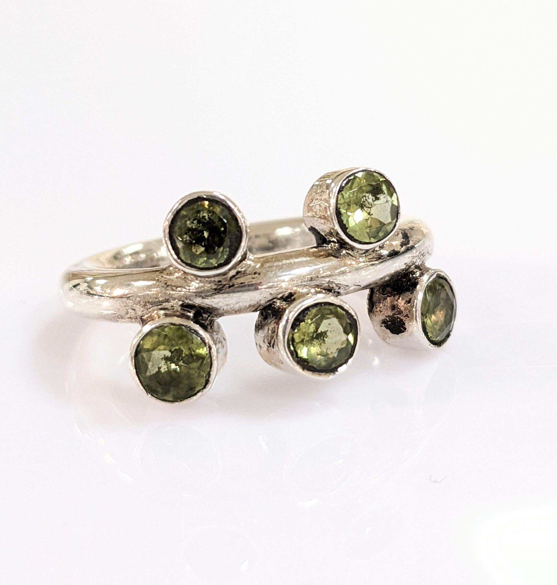 上下5石のペリドットがランダムに並んでる楽しいリング(◍•ᴗ•◍)❤