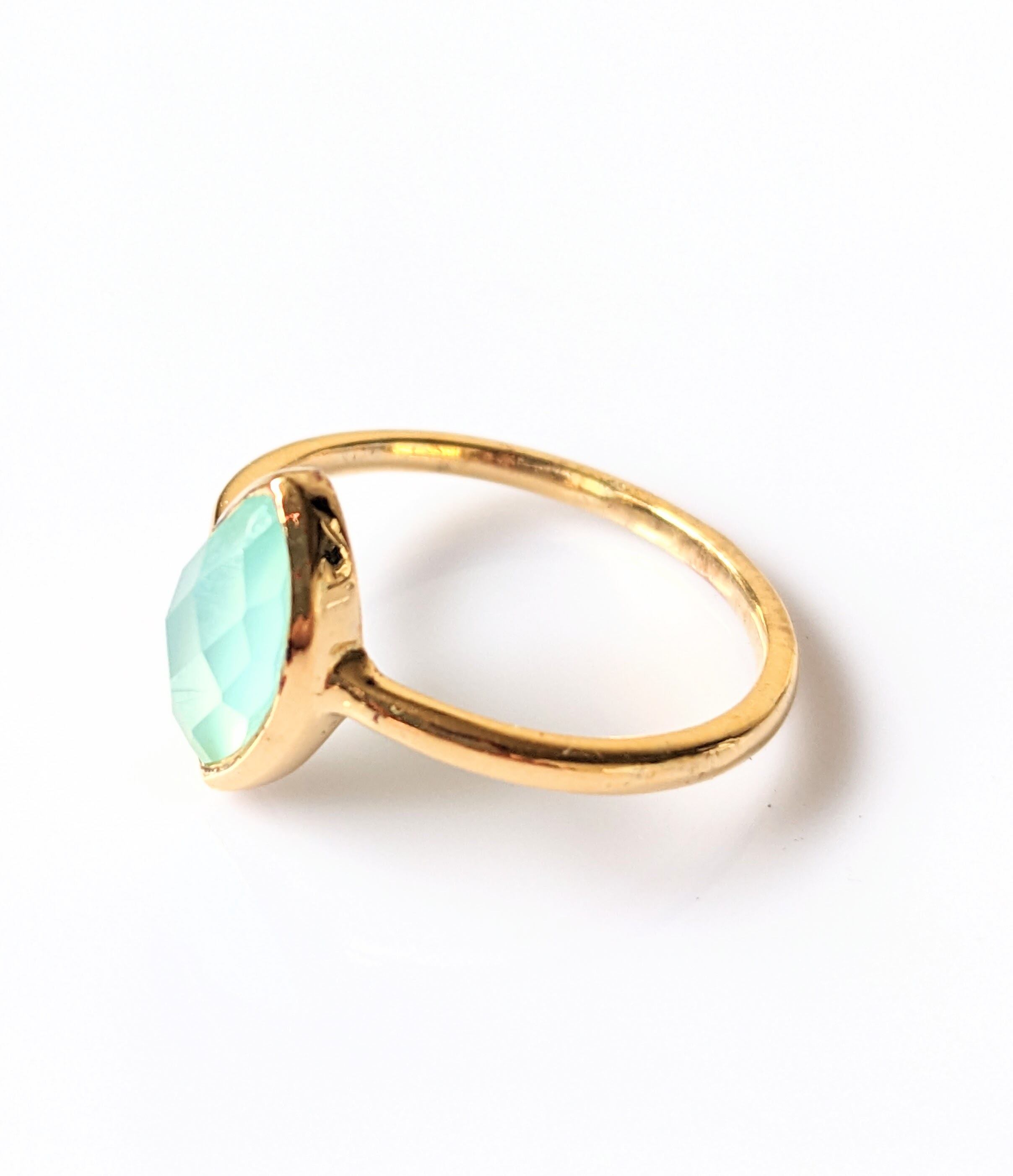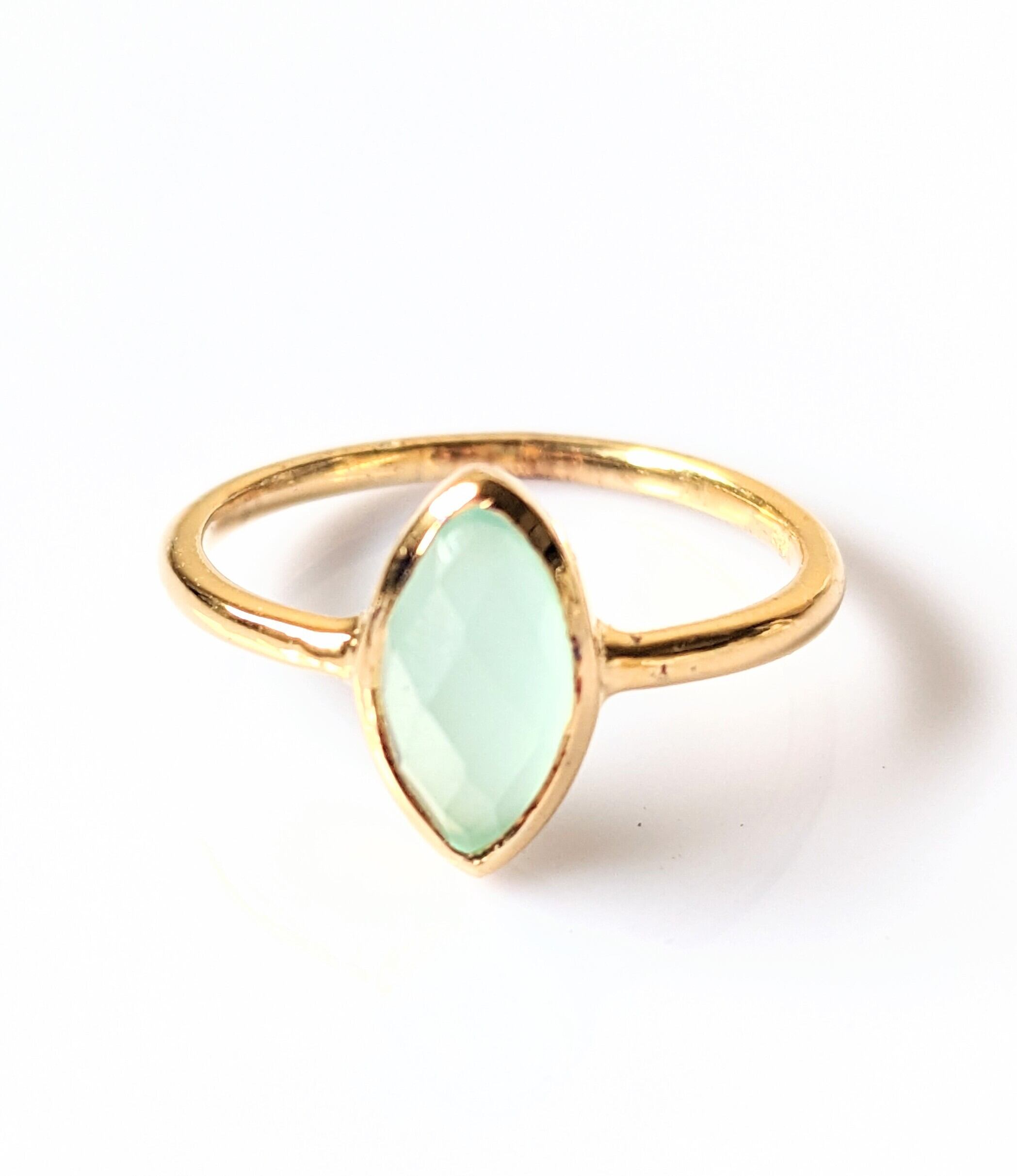 楕円形1cmと0.5cmの薄いブルーのカルセドニー、シンプルなデザインです。石のカッティングも、綺麗で石の意味の通り心を落ち着かせてくれる色合いてす(◕ᴗ◕✿)