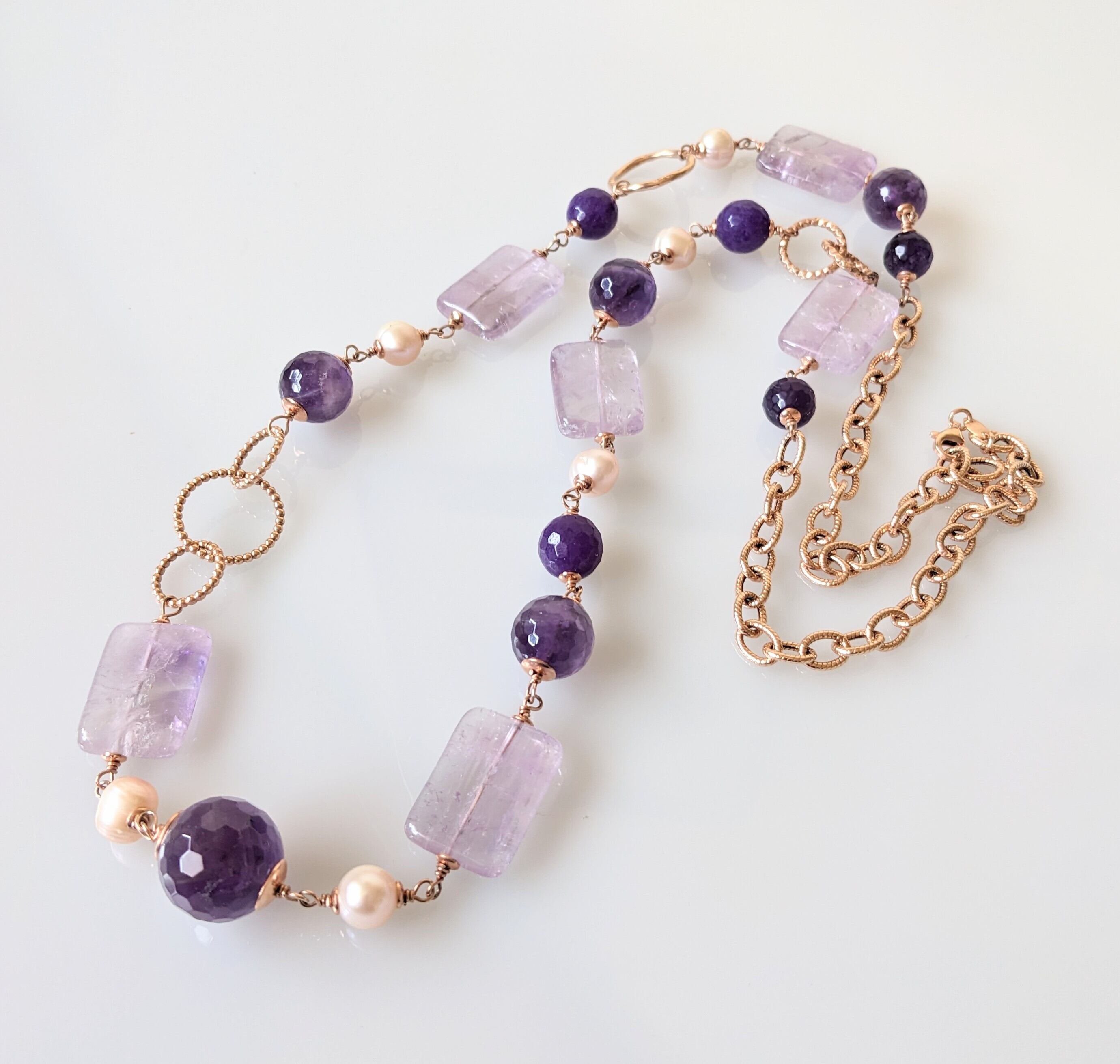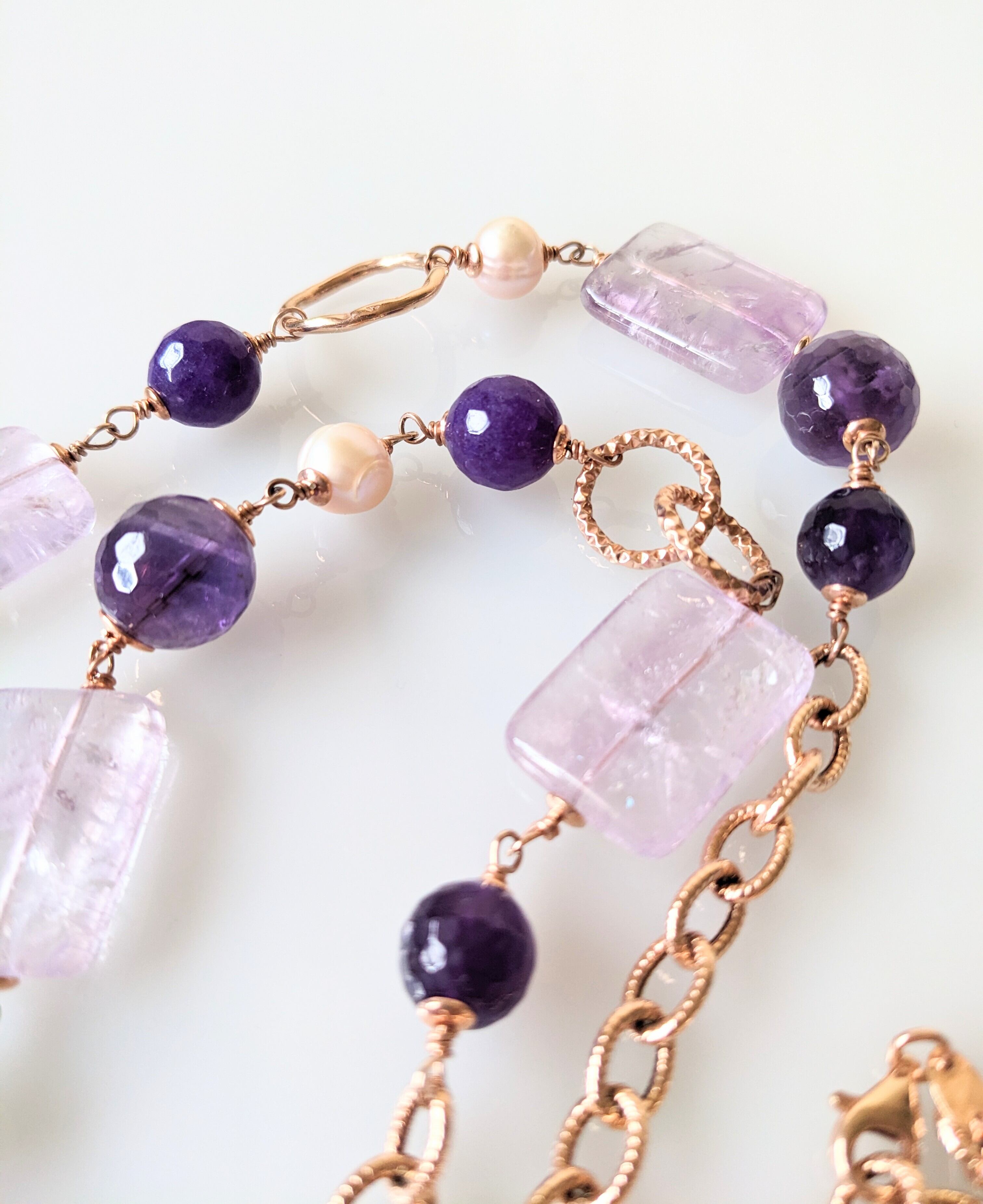 アメジスト バロックパール シルバーにピンクゴールドコーティング