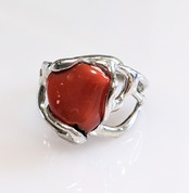 真っ赤な珊瑚と個性的なリングのデザインが、おしゃれ!
