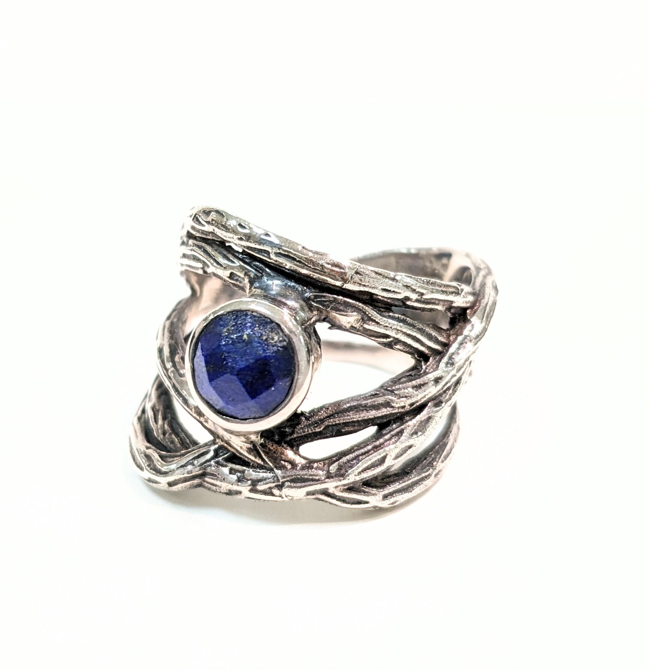 5本の木の枝の様なラインが絡み合うデザインにラピスラズリが入ってます(ʘᴗʘ✿)