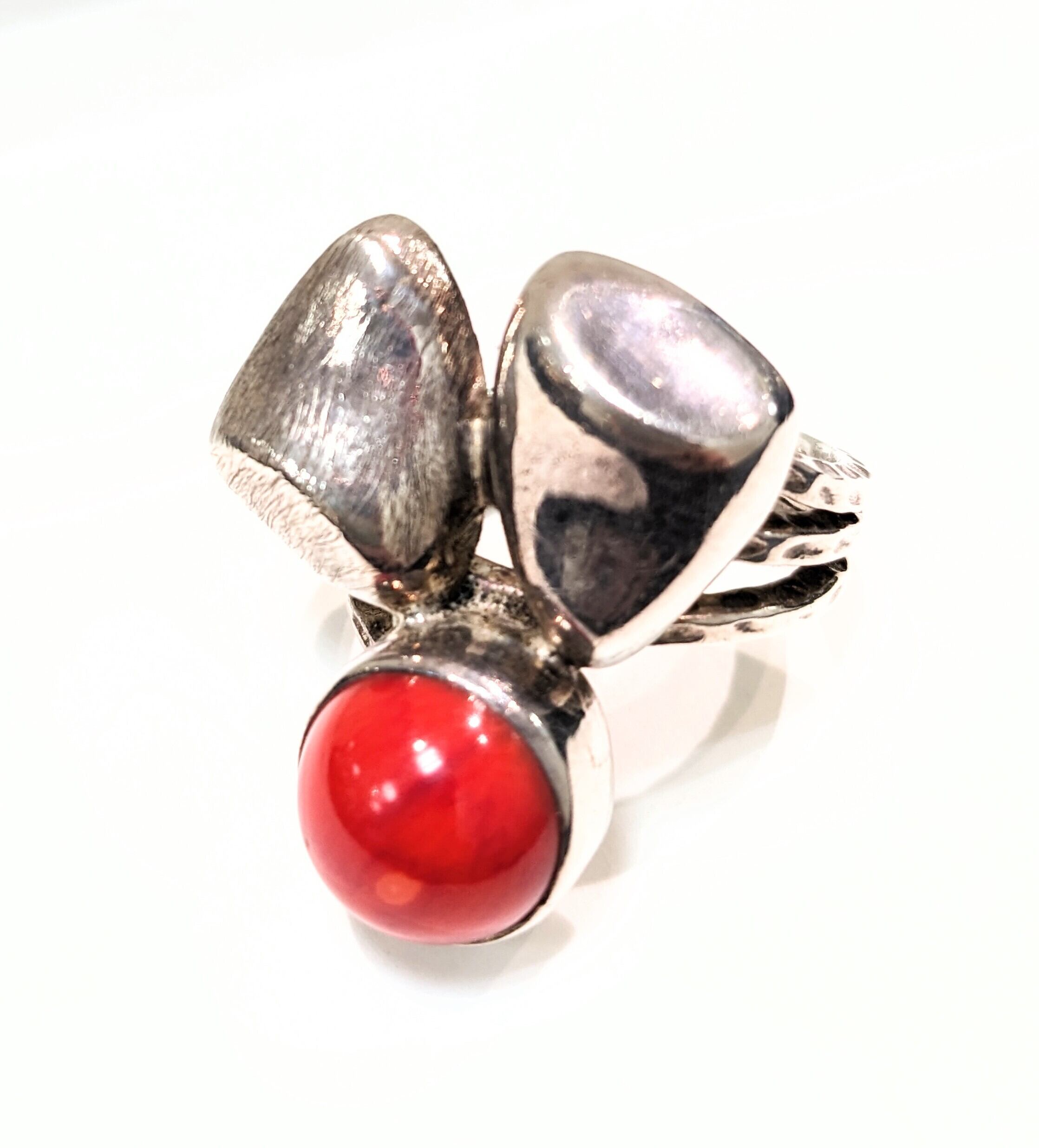 地中海サンゴは赤くて大きいし美しい色合いが特徴のリングです。個性的なデザインで、シンプルなコーディネートにアクセントを加えることができます。