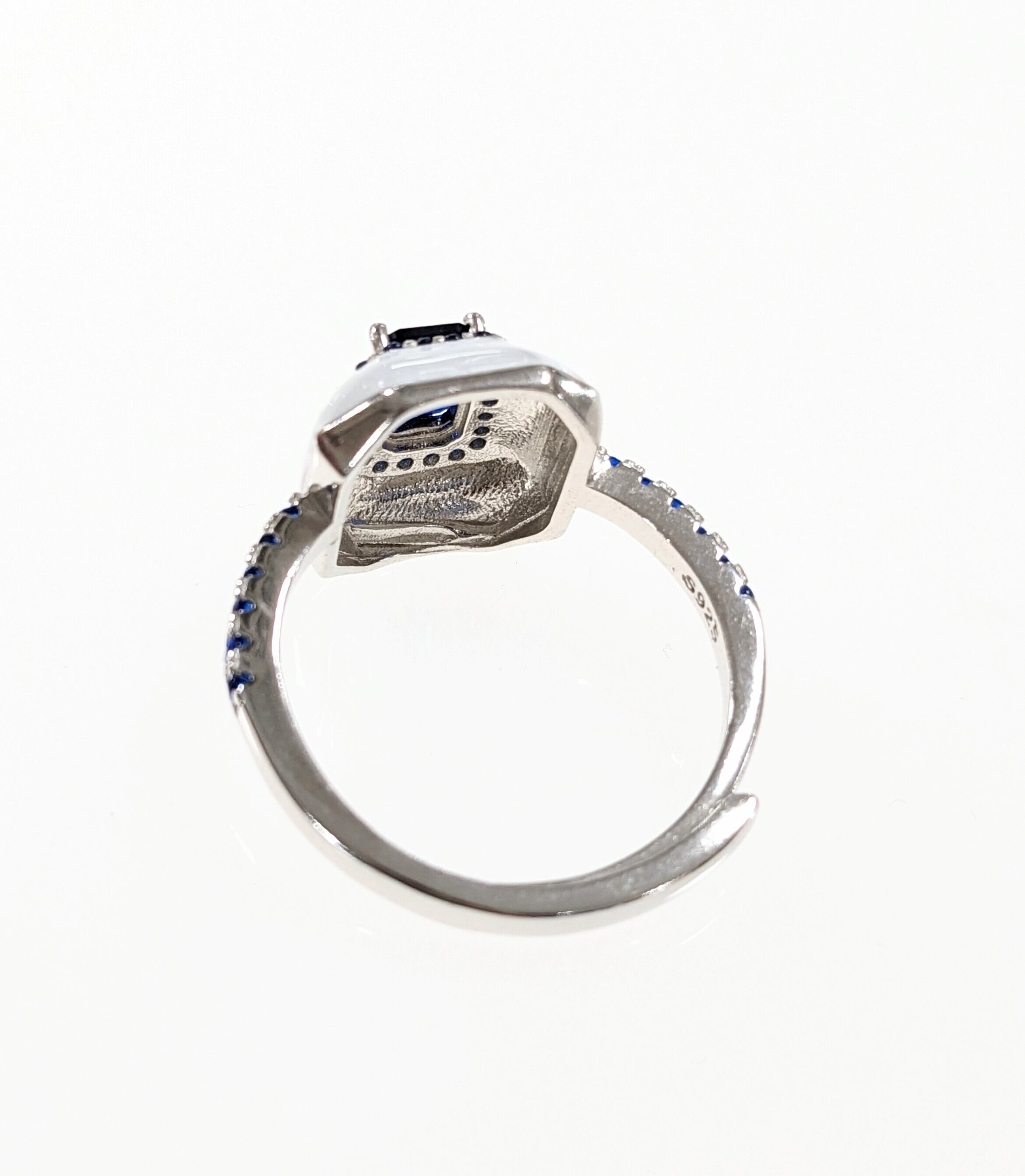 サファイアカラーのジルコニアと白いエナメルでのコンビ