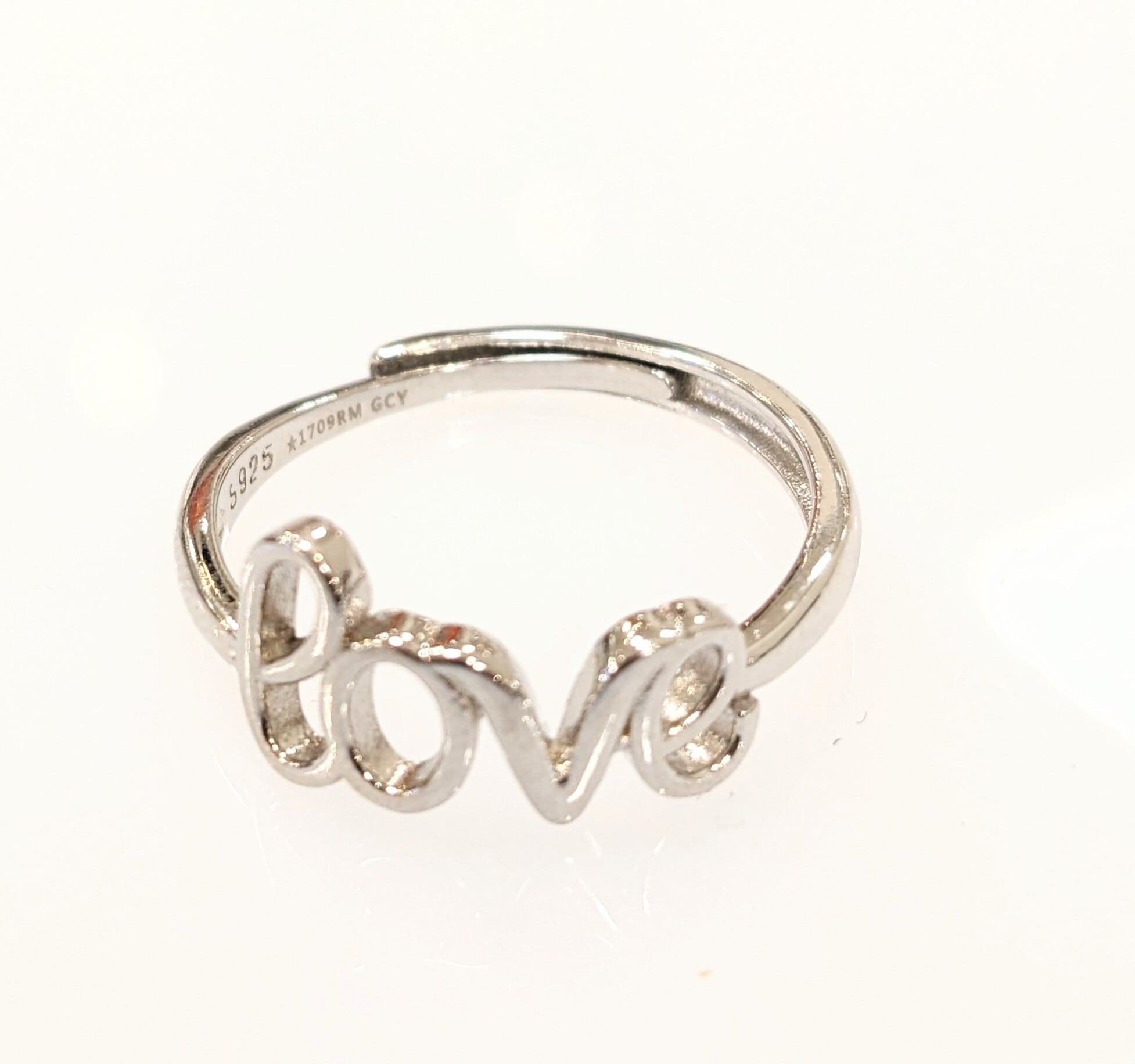 高い輝きを持つシルバーリング。指先を華やかに彩るアクセサリーです。リングの上部には愛を象徴する「Love」の文字が輝きます。シンプルなデザインながらも、存在感のある一品です。手元が美しく引き立ち、さりげないアクセントとなること間違いなし(。•̀ᴗ-)✧