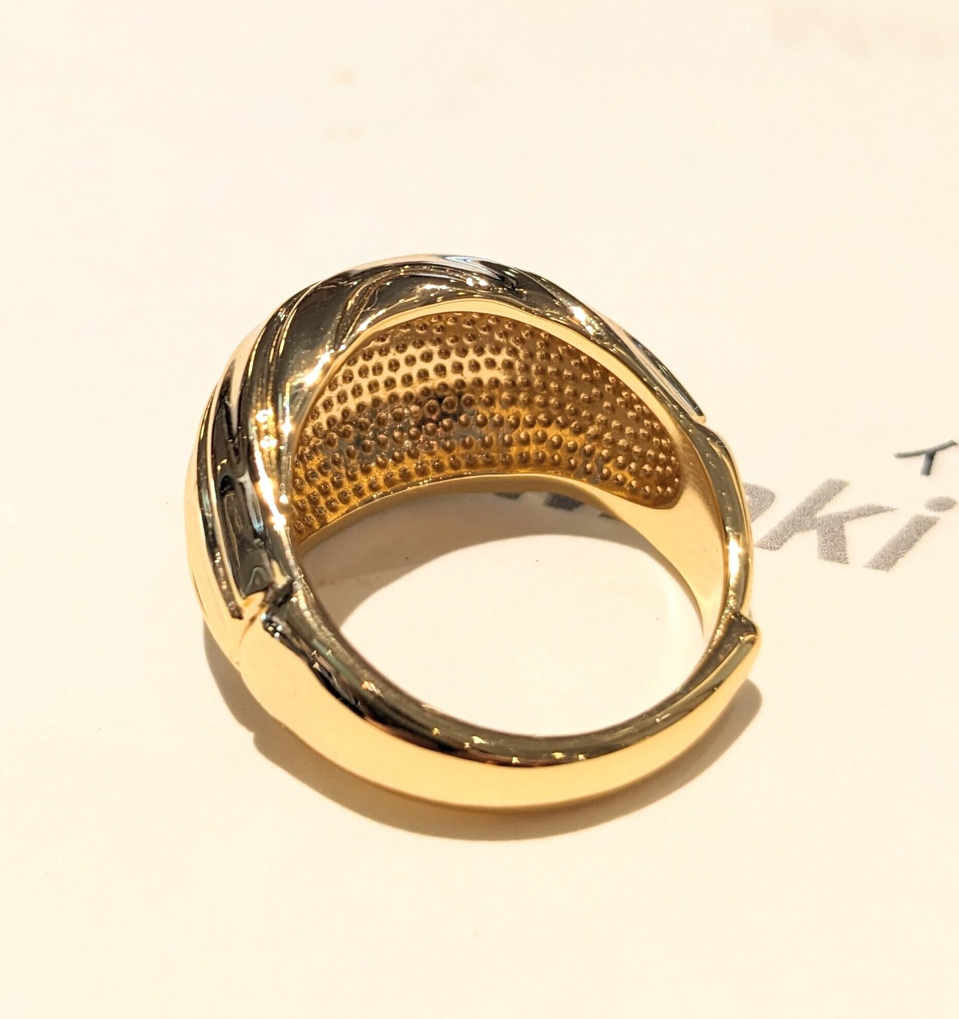 上品な輝きと存在感を放つゴールドリング。職人の手によって真鍮にコールドコーティングを施し、3回のコーティングを重ねることで、美しい輝きを実現しました\(°o°)/